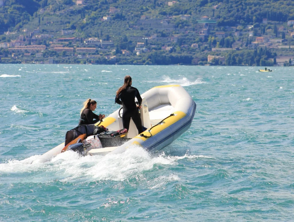 Im Gegensatz zu vielen anderen Schulen am Gardasee erfolgt die praktische Ausbildung bei Pelèr Bootsführerschein auf modernen RIB-Schlauchbooten. Diese Boote sind besonders leicht zu steuern, sehr wendig und ideal für Einsteiger. Fehler lassen sich schneller korrigieren, wodurch das Fahrgefühl schneller sicher wird – ein klarer Vorteil für die praktische Prüfung.